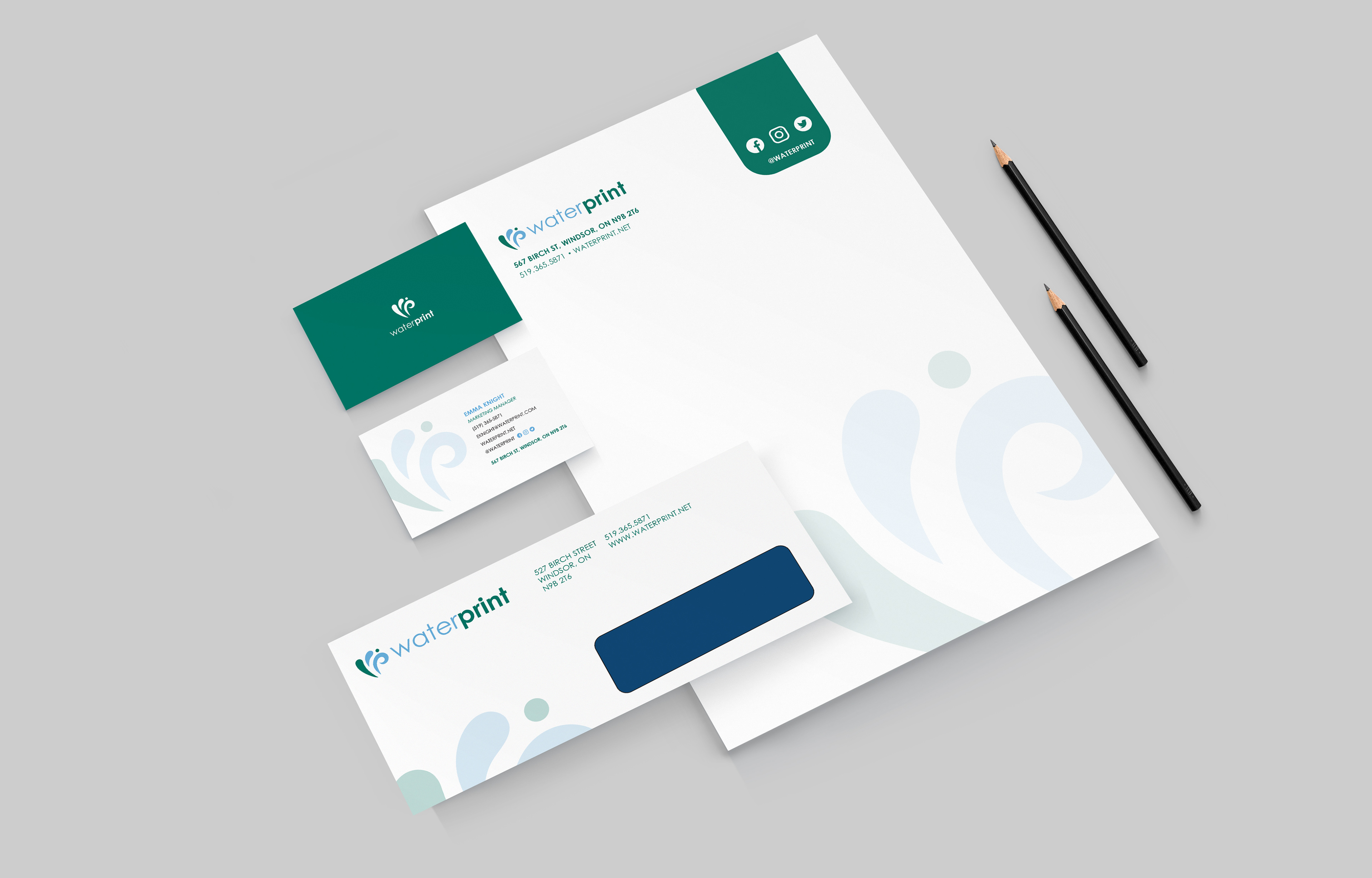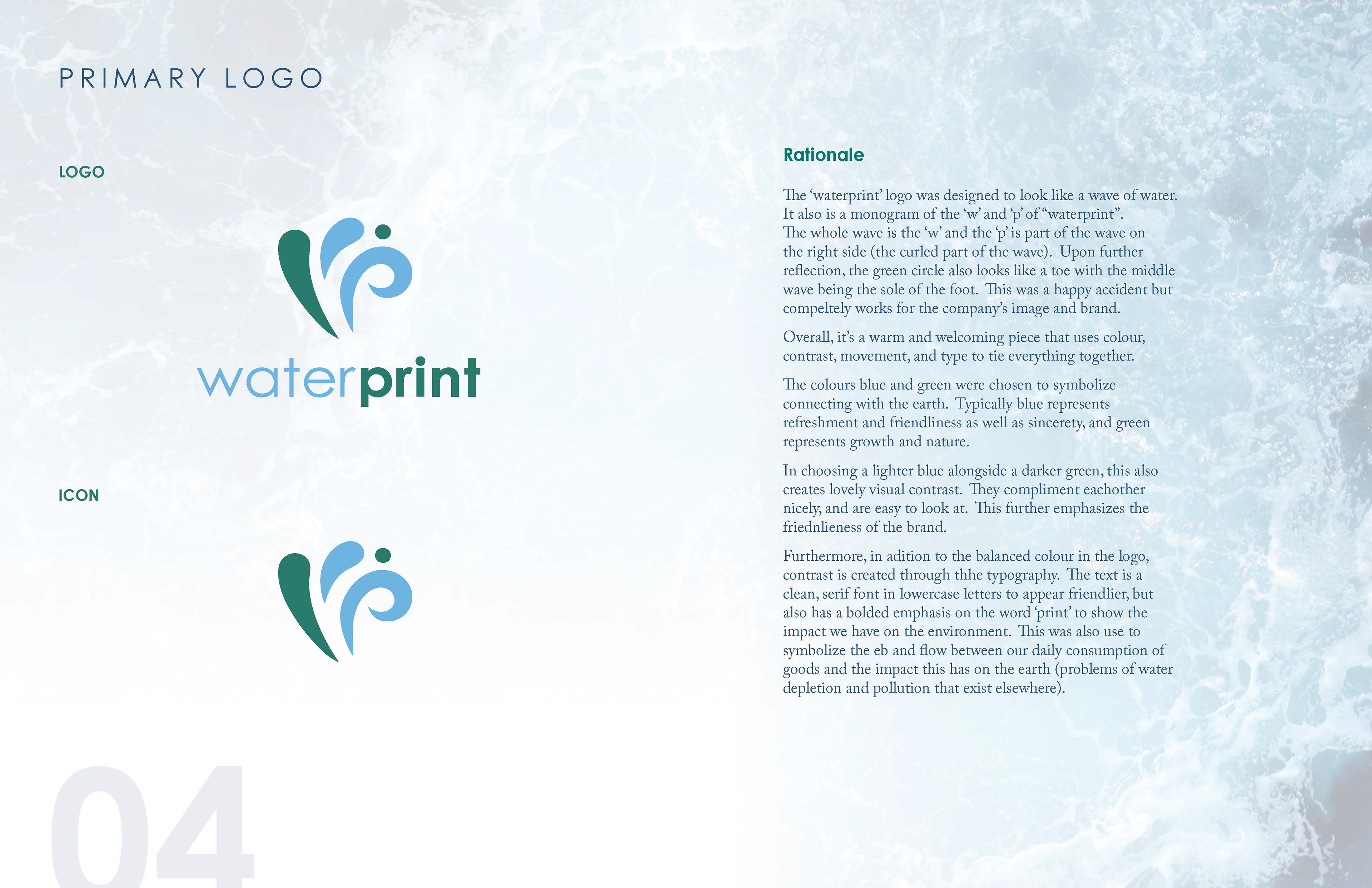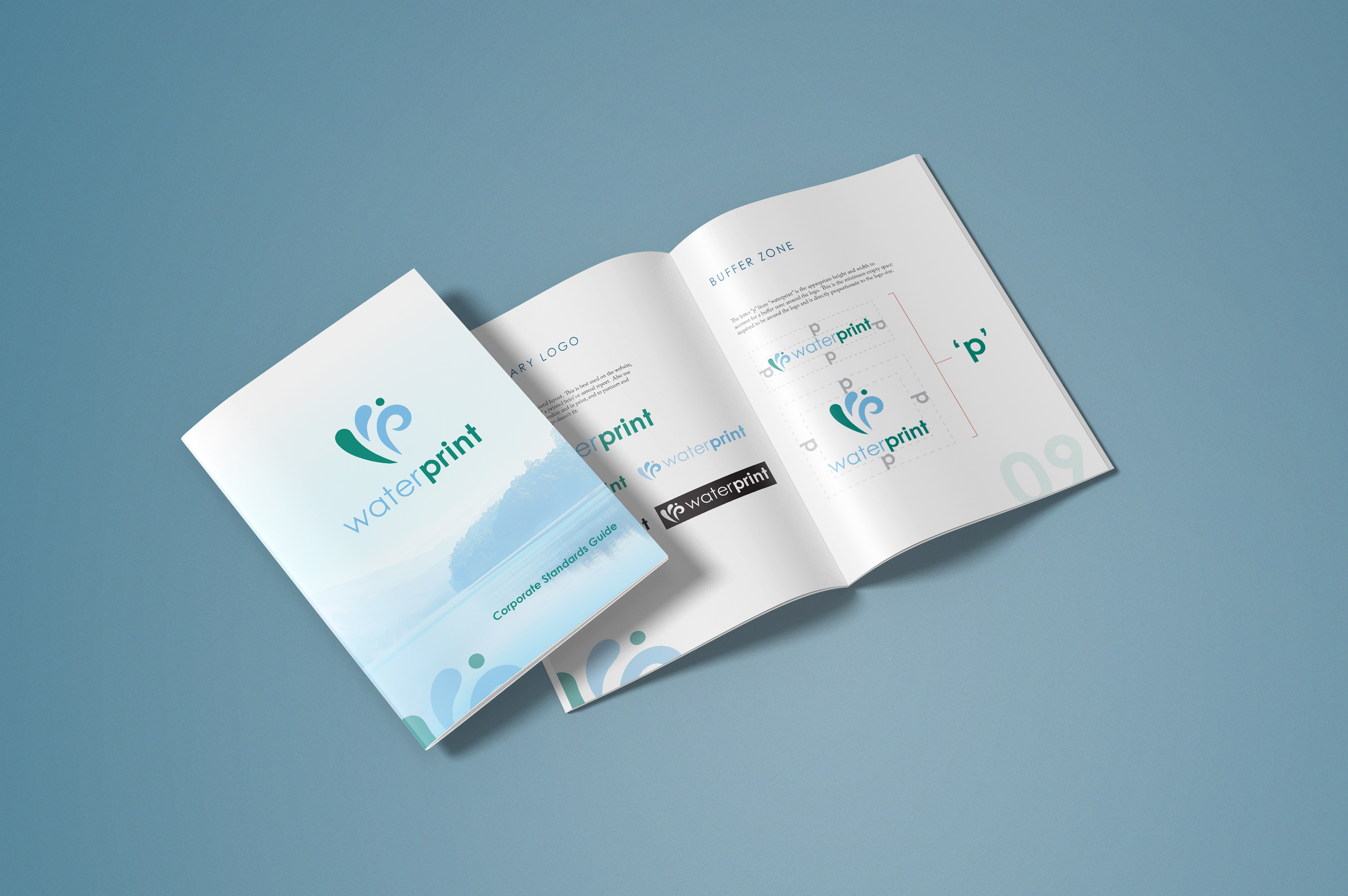 Logo and branding materials created for 'Waterprint': a company helping track our water footprint.